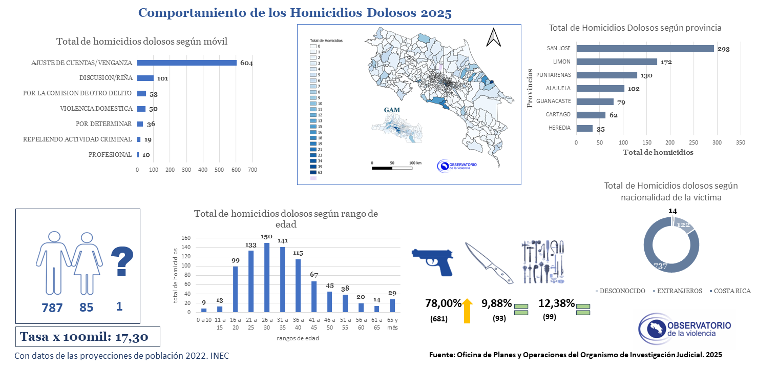El infográfico presenta los principales datos relacionados con los Homicidios Dolosos del año 2025